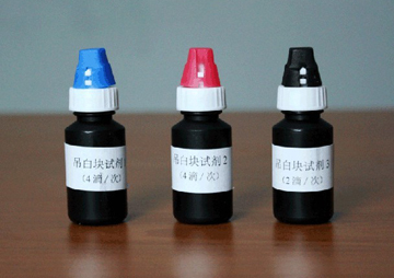 2. 取1mL上清液至1.5ml離心管中,加入4滴試劑1,4滴試劑2,蓋塞后混勻,1分鐘后,加2滴試劑3,搖勻,5~10分鐘內與標準比色卡進行顏色比對。