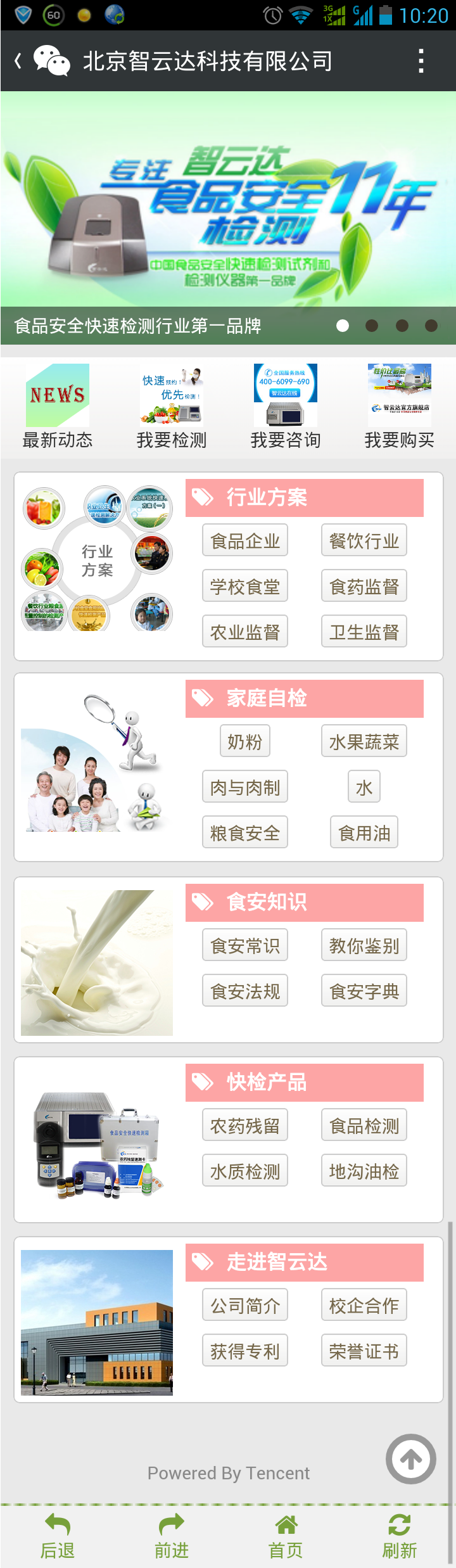 智云達微信公眾服務號已經開通,與官網同步的微官網能為用戶提供最新的食安資訊與食安知識,第一時間同步公司動態、新品發布、電商活動。倘若您有疑似食物安全問題,可以預約智云達食品安全檢測消費者體驗中心,我們為您免費檢測;遇到家庭食安問題,您可以隨時掌上咨詢,我們即時為您解答;食品企業、餐飲企業、學校食堂、食藥監督、農業監督、衛生監督解決食品安全隱患,只需一通電話便可索取您所需要的解決方案,倘若您有心儀的檢測產品,可在京東一站式購買,我們竭誠為您服務。