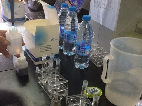 2、樣品管:取2mL樣品液于10mL比色管中,加入B溶液0.6mL、C溶液1.4mL,搖勻,靜置8min。空白管:取2mL樣品液于10mL比色管中,加入B溶液0.6mL、蒸餾水1.4mL,搖勻。