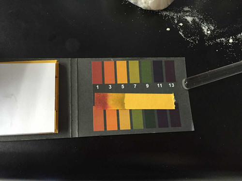 (2) 檢測 在試管中加入硼酸硼砂試劑使ph低于3,用硼砂試紙尖端沾取樣品溶液后取出,用電吹風(fēng)吹干后觀察試紙變色情況。