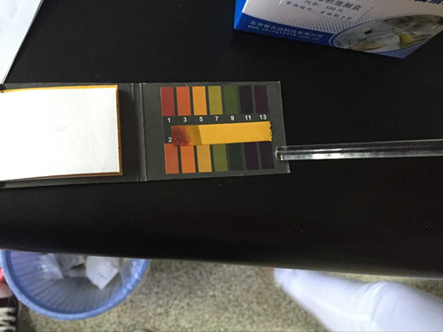 (2) 檢測 在試管中加入硼酸硼砂試劑使ph低于3,用硼砂試紙尖端沾取樣品溶液后取出,用電吹風(fēng)吹干后觀察試紙變色情況。