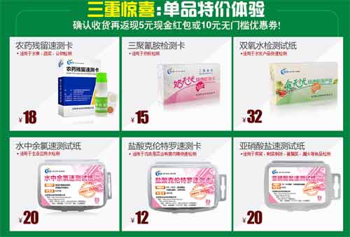 尤其常見(jiàn)的農(nóng)藥殘留速測(cè)卡、三聚氰胺速測(cè)卡、雙氧水快速檢測(cè)試紙等多款適合家庭、個(gè)人的快檢產(chǎn)品超低價(jià)體驗(yàn)。