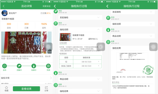 看了這么多是不是能勾起你的回憶了呢?盡管辣條里面有我們的青春,可是一直到現(xiàn)在我們?nèi)栽谫|(zhì)疑是不是五毛錢的食品只有五毛錢的安全呢?所以在食之安app的后臺(tái)現(xiàn)被發(fā)起眾籌檢測(cè)的食品里面,百分之三十七是辣條,而就在幾天前籌滿送檢的泡椒素牛板筋的檢測(cè)結(jié)果也已經(jīng)出來(lái)了,那么到底合不合格呢?看圖↓↓↓