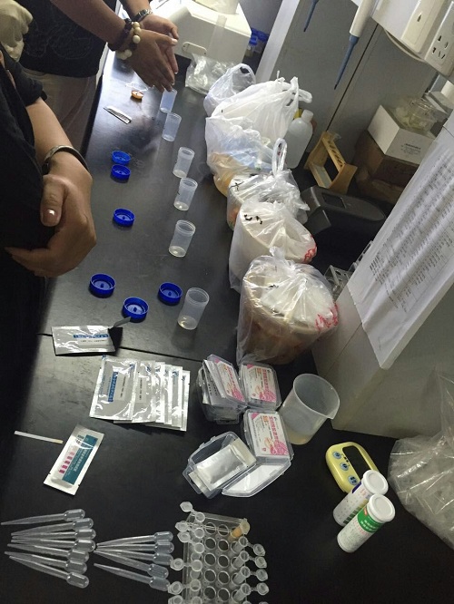 首先是麻辣燙中罌粟殼檢測:本次實驗6份樣品中,通過檢測4份出現(xiàn)兩道紅線,證明不含嗎啡,未添加罌粟殼。另外兩個樣品因油脂含量過大,影響了檢測效果,試紙未正常顯示結果,需重新檢測。
