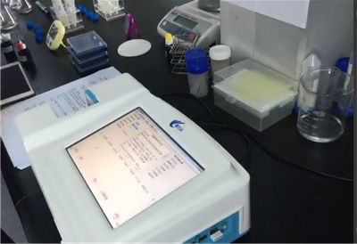 北京智云達技術工程師楊老師和趙老師首先對不同樣品通過使用北京智云達自主研發生產的快速檢測產品:SMART-01F 多功能食品安全檢測儀,對不同樣品進行甜蜜素與山梨酸鉀含量的檢測。