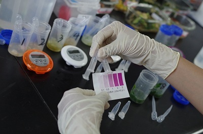 北京智云達(dá)技術(shù)工程師楊老師和趙老師將準(zhǔn)備好的樣品分別進(jìn)行標(biāo)號(hào),通過智云達(dá)自主研發(fā)生產(chǎn)的快速檢測(cè)產(chǎn)品:亞硝酸鹽速測(cè)管,對(duì)樣品進(jìn)行快速檢測(cè)試驗(yàn)。
