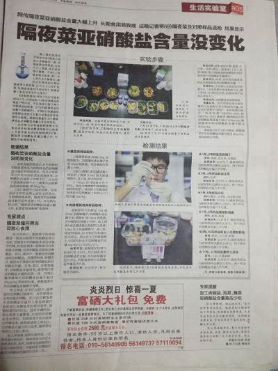 檢測(cè)結(jié)果:六組對(duì)照試驗(yàn)均無明顯變化,隔夜菜的亞硝酸鹽含量比新炒菜沒有顯著增高,可以食用。北京智云達(dá)提醒消費(fèi)者剩菜最好保存在冰箱等低溫環(huán)境下,不易變質(zhì),但也不宜超過兩天,并且不要長(zhǎng)時(shí)間放置在室溫環(huán)境下,細(xì)菌容易滋生,會(huì)將硝酸鹽轉(zhuǎn)化成亞硝酸鹽。