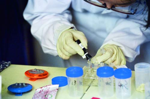 檢測(cè)員向樣品液中加入檢測(cè)試劑