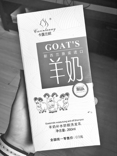 洗發乳外包裝上“羊奶”二字異常醒目 讀者小曹 攝