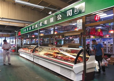 昨日上午,位于大洋路市場(chǎng)熟食區(qū)41號(hào)的北京瑞紅商貿(mào)有限公司仍在正常營(yíng)業(yè)。調(diào)查顯示,4月以來(lái)該公司多次從黑作坊購(gòu)入熟食。新京報(bào)記者 李強(qiáng) 攝