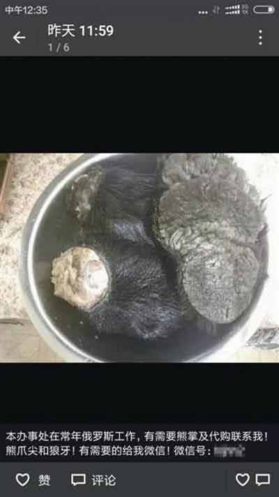 本文關(guān)鍵詞:微信朋友圈公然叫賣熊掌980元一斤 自稱有專門渠道“代購(gòu)”