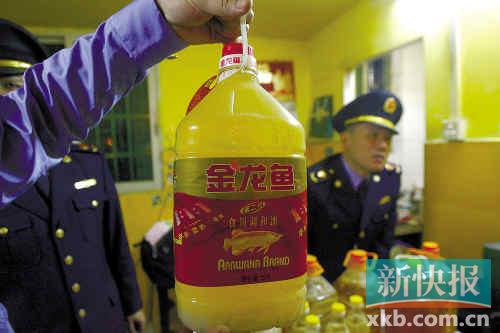 天河區(qū)工商所曾在一雜貨店查處340多罐假冒偽劣地溝油,不法商人將其假冒成"金龍魚(yú)"等食用油。