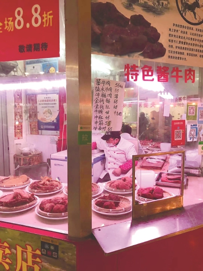 政和路上的雨潤熟食店,25克重的盒子當(dāng)作牛肉一起出售。