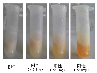 若反應(yīng)溶液出現(xiàn)橙黃色、橙紅色,可判定樣品中含有喹諾酮類(lèi)物質(zhì),為陽(yáng)性(+);否則判為陰性(-)