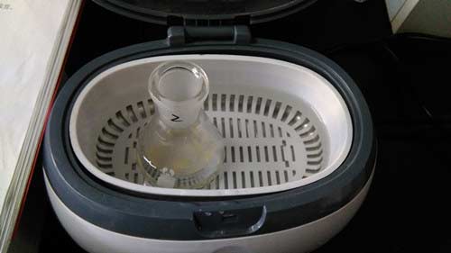 (1) 樣品處理:稱取粉碎的樣品1.0g,于50mL三角瓶中,加蒸餾水19mL,A溶液1mL,充分搖動(dòng),超聲5分鐘,靜置5分鐘,過(guò)濾,濾液備用。