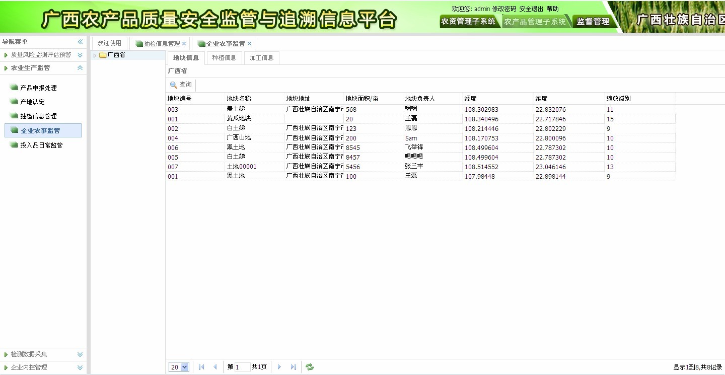 企業(yè)農事信息服務與企業(yè)自檢信息核查。本版塊提供給監(jiān)管部門查看。如圖2-4所示