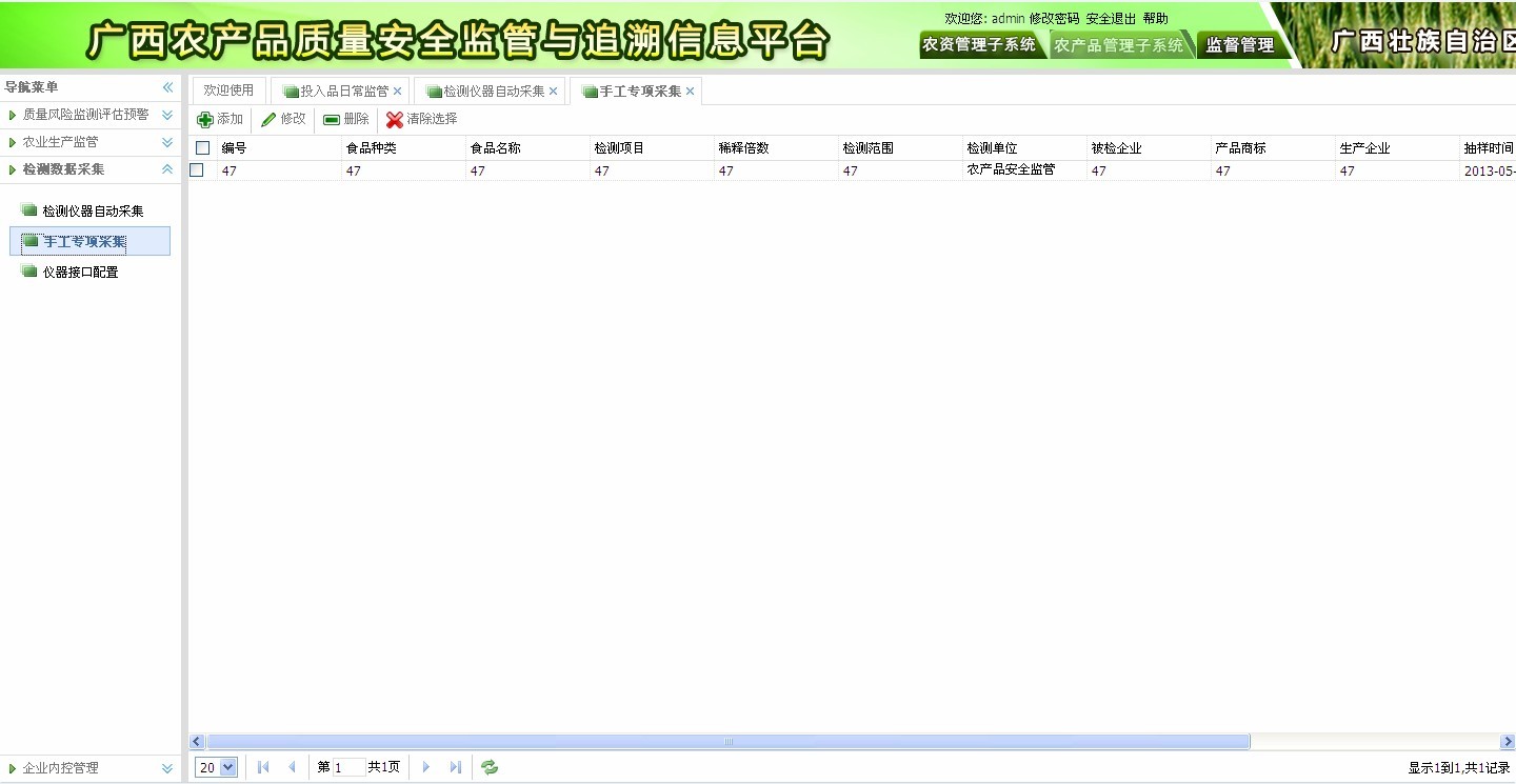 無需自動采集的檢測數(shù)據(jù)通過該版塊手動錄入采集結果。提供增刪改功能,便于操作。如圖3-2所示