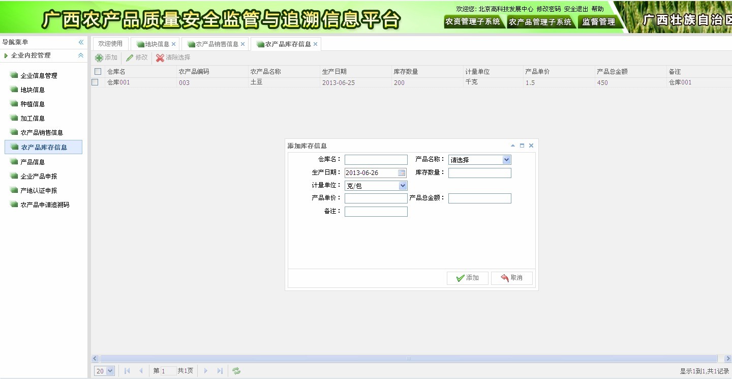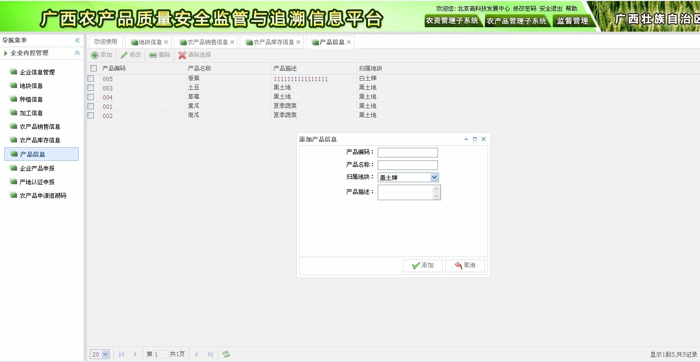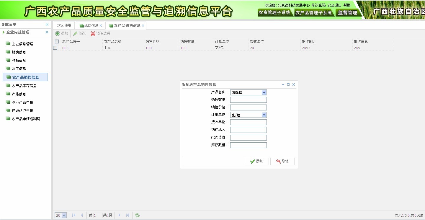 農產品質量安全監(jiān)管與追溯信息平臺—農產品管理系統(tǒng)
