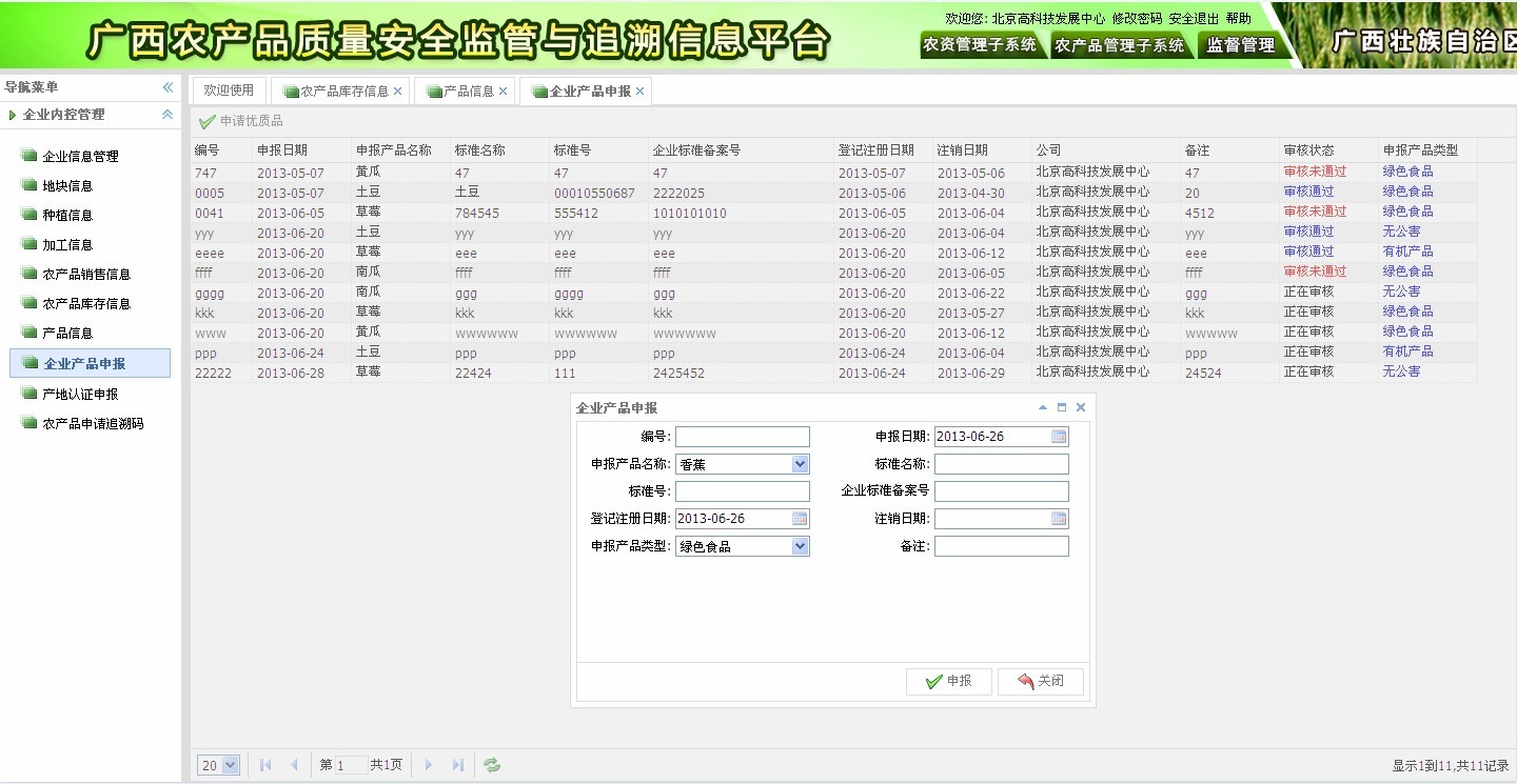 ? 企業(yè)信息管理:基本資質、產地環(huán)境、生產基地、管理制度等;