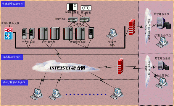 (2)INTERNET/郵政綜合網:本系統的建設將緊密結合現有網絡覆蓋面廣的資源優勢,構建起全新一代的互聯網應用。
